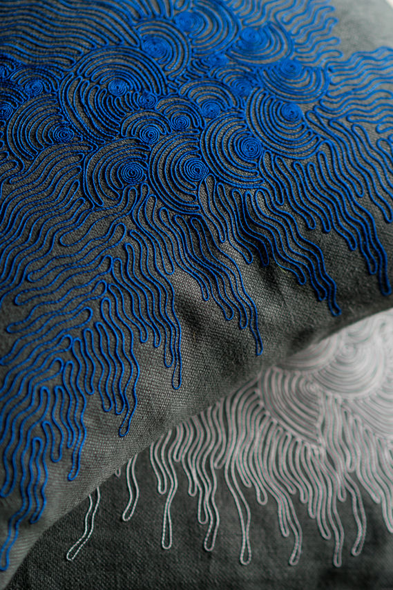 From our exchange with Ablaye, is born a collection of cushion which symbolize the mixture between our two cultures and our two different ways of seing embroidery. We gave Wolof names to our pieces : Asamaan which means “sky” in Wolof and Toor-Toor which means “flower” in Wolof.